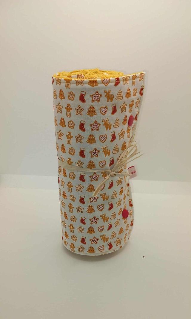 Rouleau Essuie-tout lavable 8 feuilles côté coton motif et un côté éponge.
