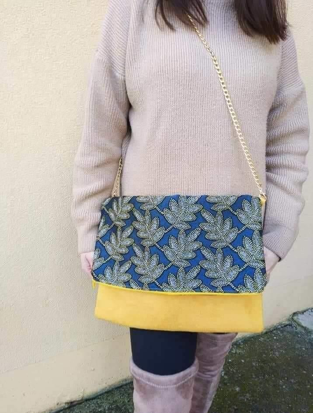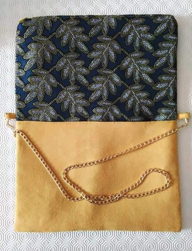 Pochette en tissu imprimé et en suédine fermeture zip